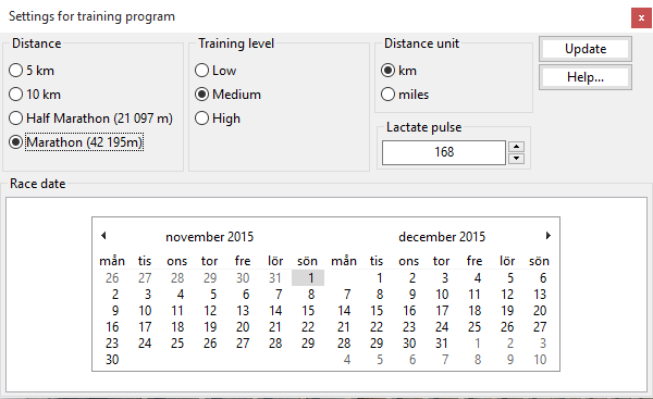 - Race date. Select the race date. Currently, the race date is always assumed to be on a Sunday. This will be