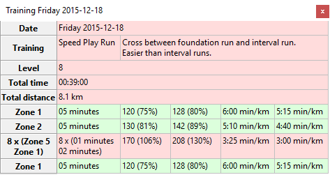 The total time and distance are computed from the pace you set in the zones pane. When a different date is selected by clicking a row in the